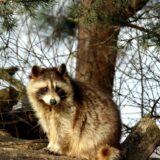 アライグマ:目の周りに黒いマスク模様、しま模様の尾、足跡は5本指で人の手のような形
